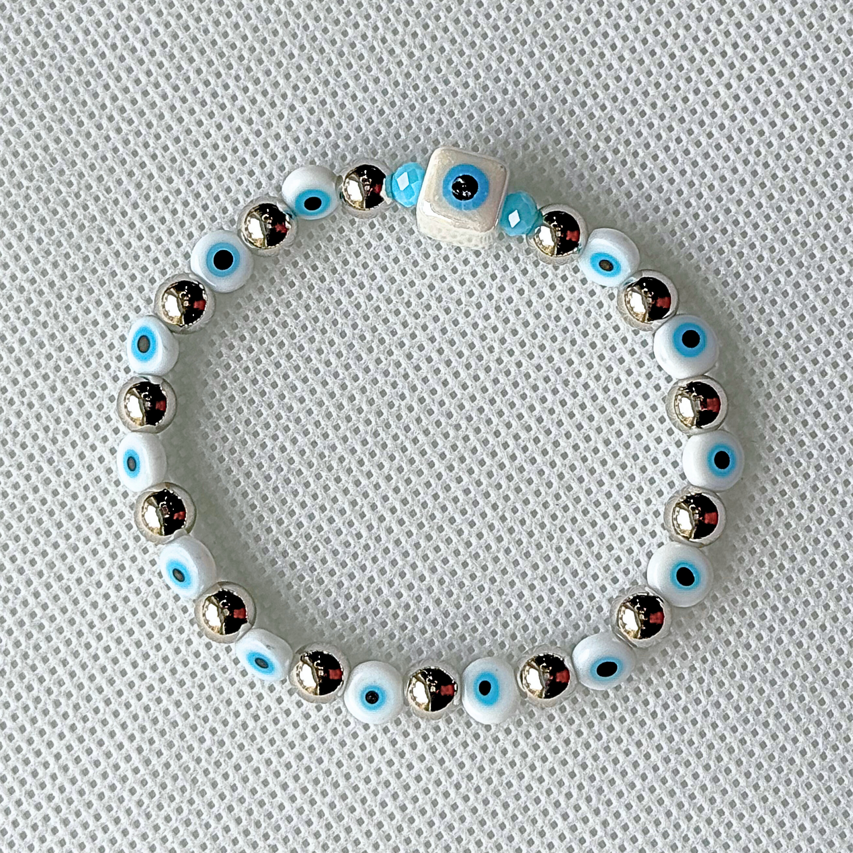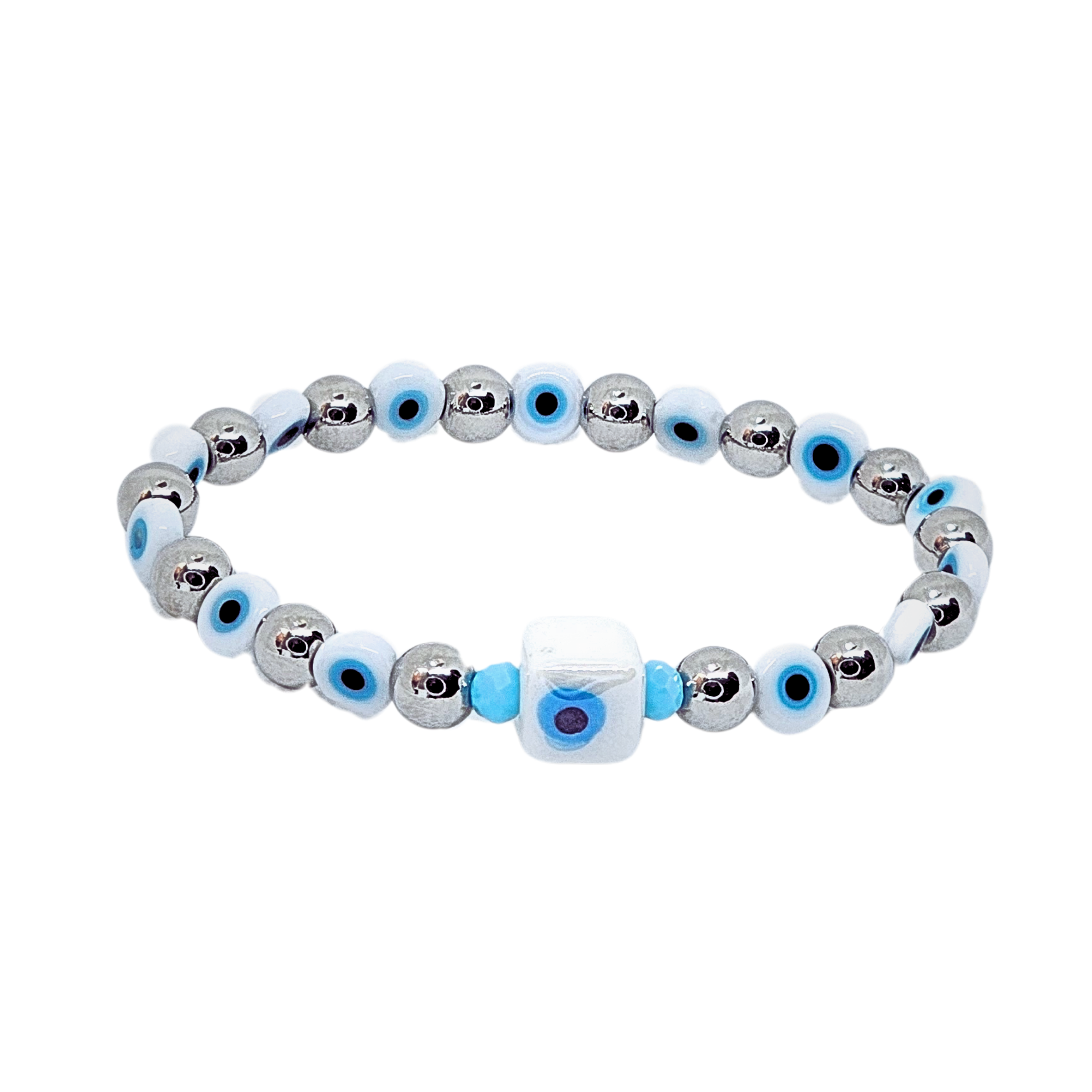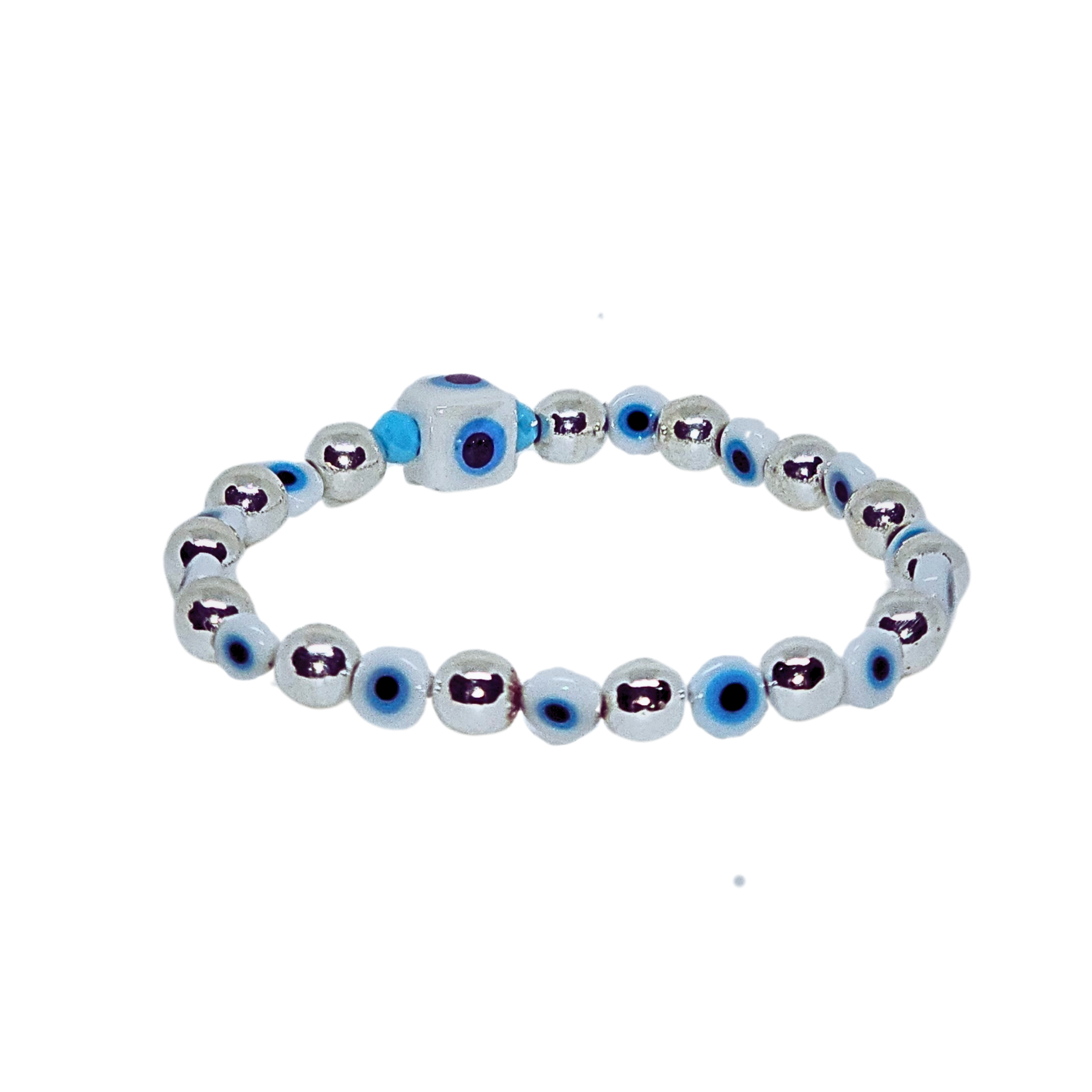 El brazalete Enfoque es una joya diseñada para quienes valoran la claridad, la precisión y la intención en cada aspecto de la vida. Inspirado en la importancia de mantener una visión centrada, Enfoque está compuesto de elegantes piedras plateadas intercaladas con piedras blancas de "ojo", símbolo de protección y percepción. En el centro, una piedra cuadrada de "ojo" destaca como el punto focal de la pieza, representando la fuerza de una mirada atenta y decidida.