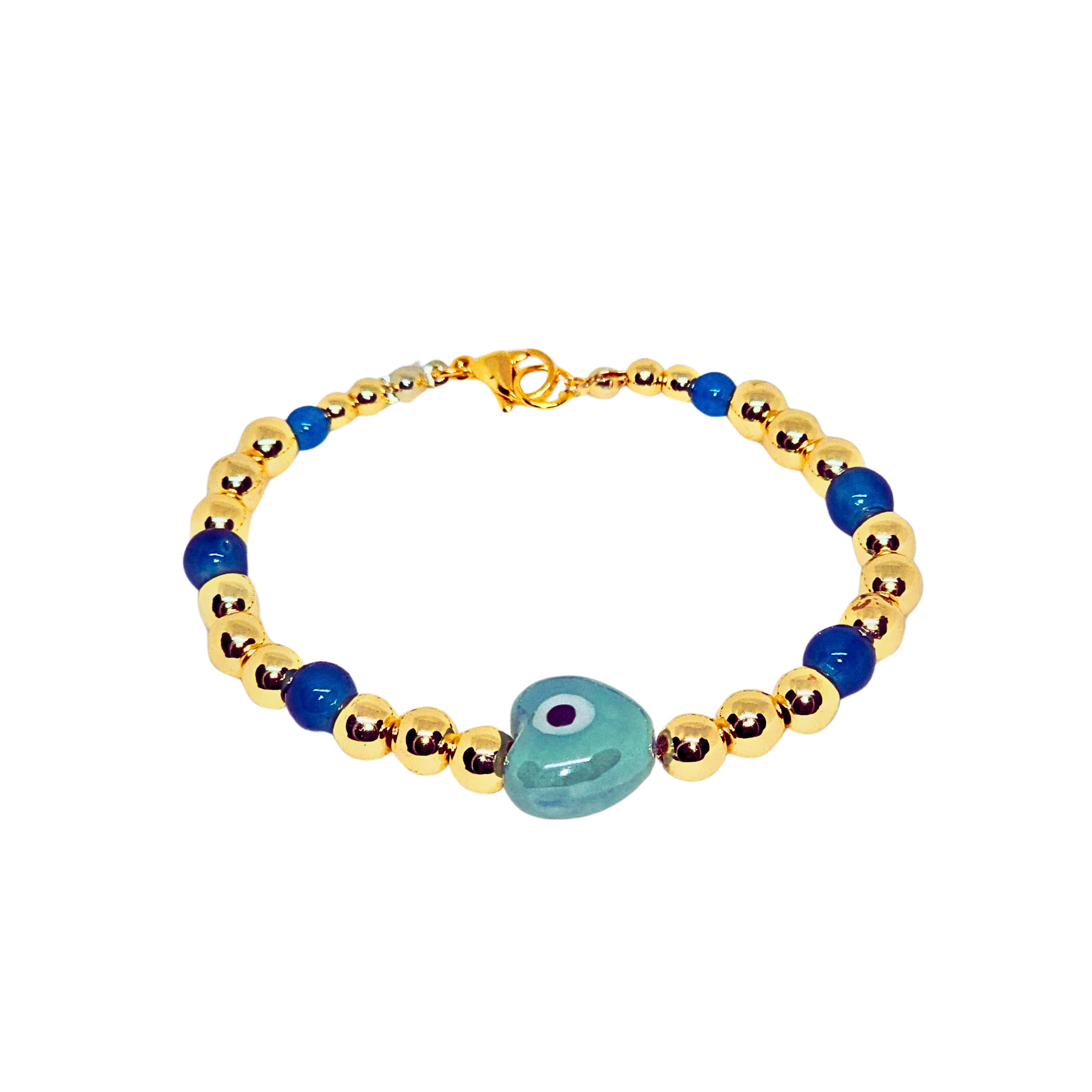 El brazalete Impulso es una pieza vibrante que captura la esencia de la energía y la determinación, inspirado en los impulsos eléctricos que nos impulsan a actuar y conectar. Compuesto por piedras doradas que evocan vitalidad y dinamismo, y piedras azules que aportan serenidad y profundidad, Impulso es el equilibrio perfecto entre fuerza y calma. En el centro, una piedra de "ojo" en forma de corazón añade un toque de protección y simbolismo, representando el poder de seguir adelante con pasión y propósito.